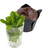 Verse munt- of sinaasappel/ gemberthee met triple chocolate muffin